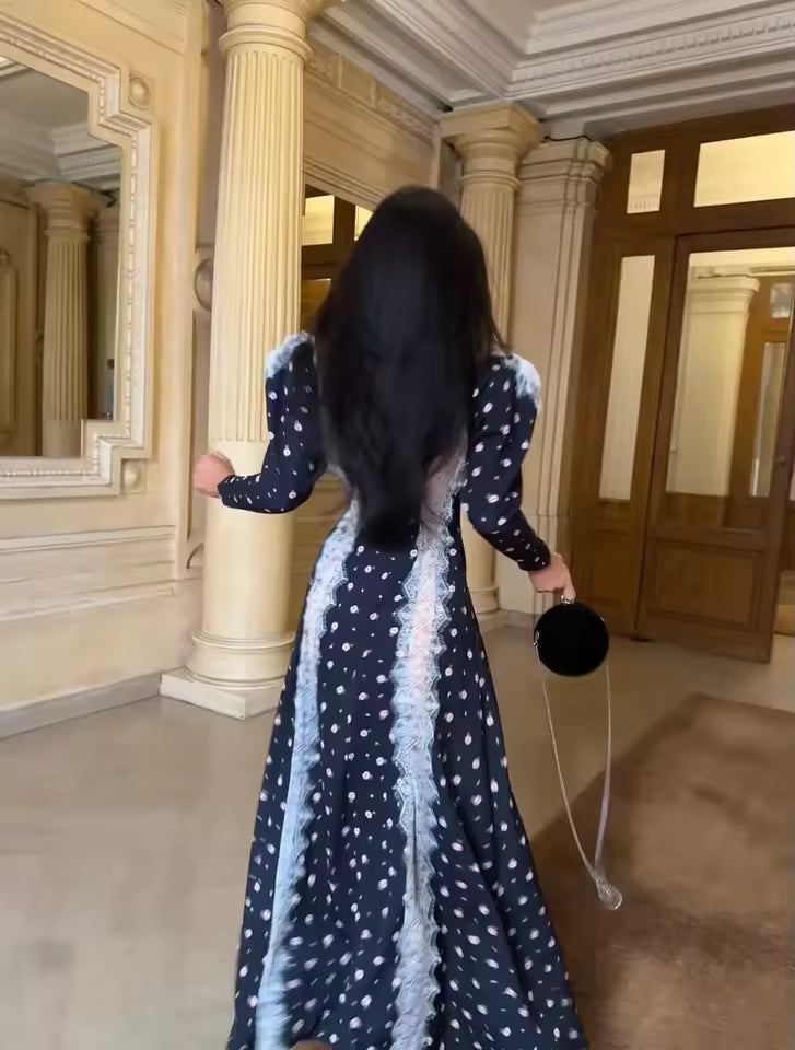 Questo abito lungo con stampa floreale rappresenta uno stile raffinato e contemporaneo, perfetto per la donna moderna.